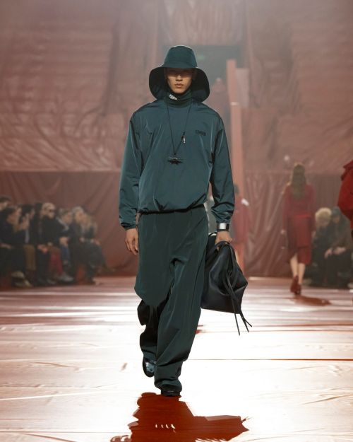 투명 나일론 패딩, 볼륨감 있는 실루엣, 축축한 질감이나 리플렉티브 마감의 아이템들은 벨벳 소재와 르네 블레이저의 소프트 테일러링과 조화를 이루며 컬렉션의 균형을 완성한다.