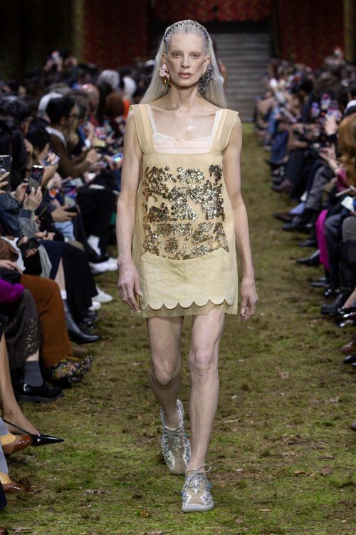 코튼 포플린, 워시드 더블 캐시미어, 리넨, 자수 장식 튤 등 피부 가까이 닿는 소재들이 중심을 이루며 언더웨어에서 영감을 받은 리본 장식이 더해져 몸과 옷의 친밀한 관계를 강조했다.