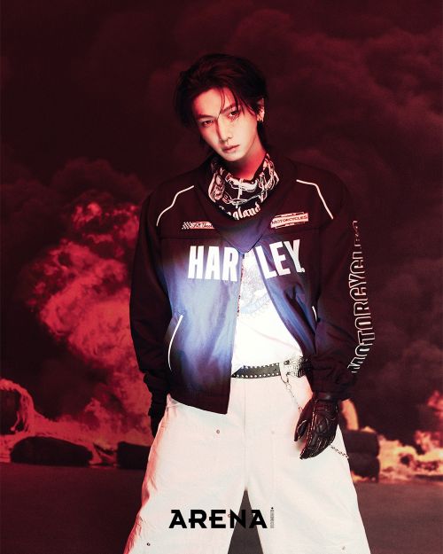 화보 속 리우가 착용한 시그니처 롱슬리브 티셔츠는 브랜드의 로고와 엔진, 도로에서 이어온 전통을 올드 런던 서체로 재해석한 제품이다. 두껍고 각진 획과 수직 구조의 그래픽 구성이 할리데이비슨특유의 강렬한 이미지를 강조하며 앞면과 뒷면, 소매에 배치된 그래픽 장식이 스트리트 감성을 더한다.