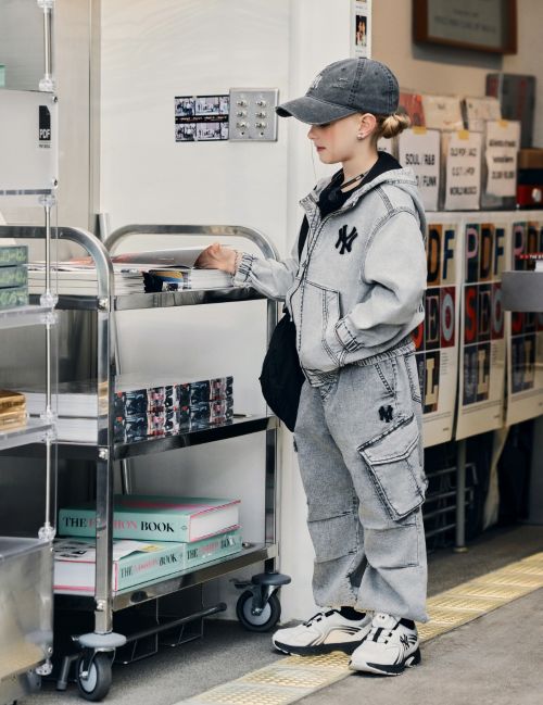 재킷과 함께 상하 셋업 또는 각각 단품으로도 연출이 가능한 베이직 저지데님 카고 조거팬츠 뉴욕양키스는 사이드 사선 입체 포켓과 무릎의 핀턱 디테일이 편안하면서도 캐주얼한 무드를 연출한다.