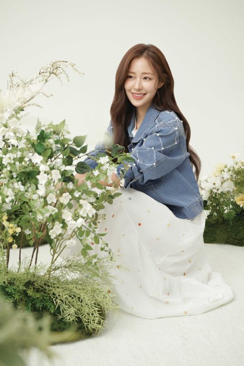 두 번째 화보에서는 진주 포인트를 더한 데님 재킷에 화이트 그래픽 티셔츠와 플로럴 자수 장식의 롱 플레어 스커트를 매치해 여성스러우면서 활동성을 겸비한 봄 나들이 룩을 선보였다.