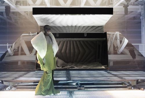 새롭게 선보이는 ‘몽클레르 + 릭 오웬스’는 엄숙하고 길쭉한 실루엣과 빛나는 퀼팅이 특징이며 내부 음향, 조명, 영상 시스템 등이 갖춰진 수면 캡슐 안팎에서 즐길 수 있다.