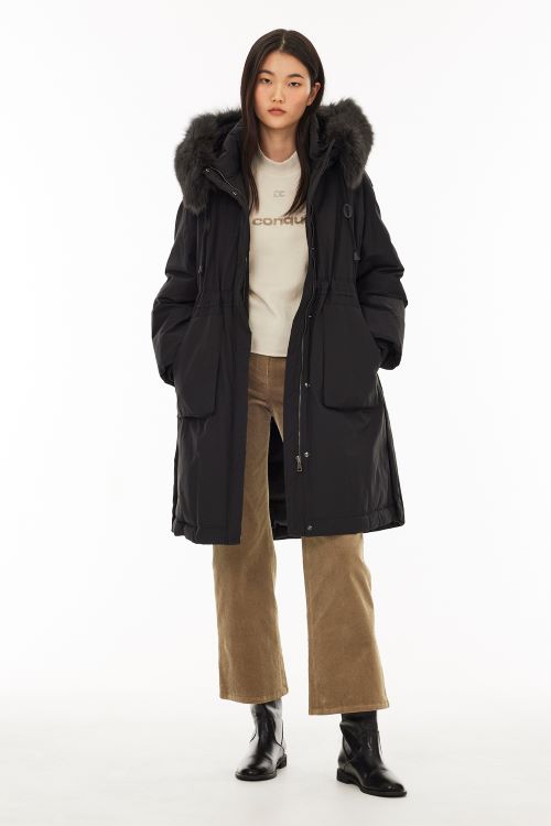 ‘지컷’은 올해 숏패딩과 함께 다양한 스타일의 롱패딩을 선보였는데 그 중 벨티드 퍼 후드 구스다운 패딩이 여성 패딩 매출 1위를 차지했다.