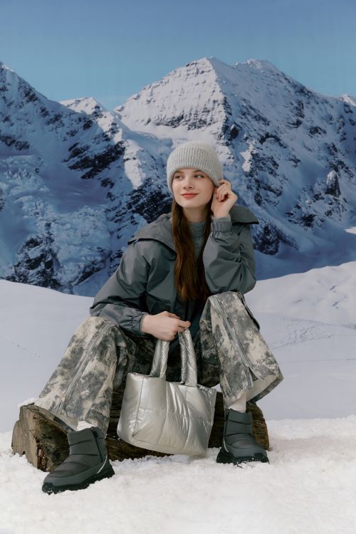 컬렉션 상품 중 스트링 패딩 부츠와 스트링 패딩 슬리퍼는 동글동글한 실루엣과 함께 조리개 디테일을 더해 완성도를 높이고 합리적인 가격으로 선보였다.