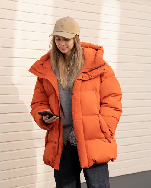 헤비 구스다운 점퍼는 지퍼를 올렸을 때 얼굴까지 감싸는 하이넥 형태의 높은 후드가 돋보이는 디자인이 특징이다. 중간 길이의 기장으로 활동성이 우수하고 프리미엄 다운 소재로 알려진 브랜드 ‘프라우덴’의 거위 솜털 80%, 깃털 20%를 사용하고 패딩의 복원력을 측정하는 필파워 650으로 높은 기능성을 구현했다. 가격은 소비자가 46만9천원으로 베이지, 네이비, 오렌지 등 3가지 색상 중 선택 가능하다.
