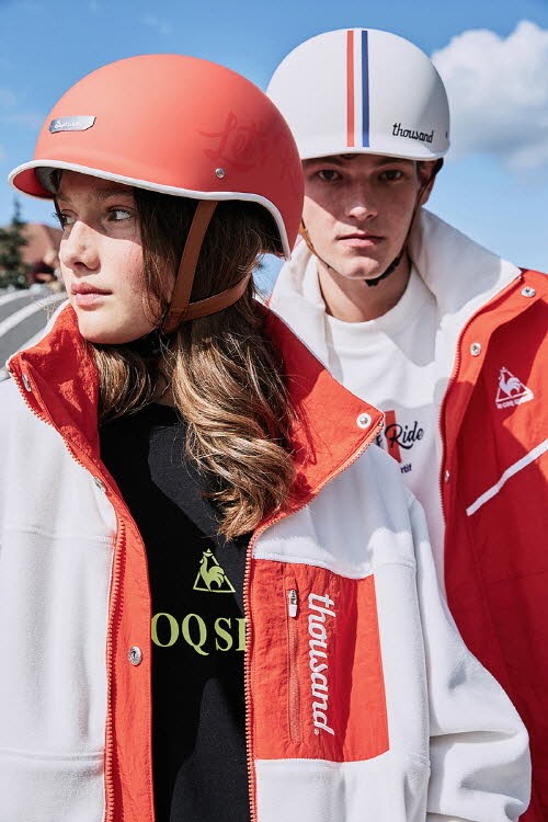 ‘르꼬끄스포르티브’는 매 시즌 사이클 기반의 퍼포먼스와 라이프스타일, 사이클 전문 브랜드와 콜라보레이션등 다양한 스타일을 제안해 왔는데 이번 시즌에는 어반 감성을 담은 클래식한 디자인으로 일상에서도 착용하고 싶은 헬멧으로 많은 마니아를 보유한 헬멧 전문 브랜드 ‘따우전드’가 만나 ‘렛츠 라이드(LET’S RIDE)’라는 슬로건 아래 ‘안전하고 건강하게 라이딩을 즐기자’는 메시지를 담은 캡슐 컬렉션을 출시했다.