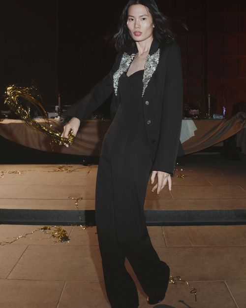 모던함과 클래식함이 어우러져 새로운 세련미를 선사하는 턱시도 테일러링 룩은 ‘맥퀸’의 시그니처 모티프인 비대칭 ‘MacQueen’ 타탄과 해부학적 디테일의 레이스가 대담하게 조화를 이루며 크리스털 장식의 니트웨어와 매치된 테일러드 룩은 스트리트 무드에서 축제로 이어지는 강렬한 변주를 완성한다.