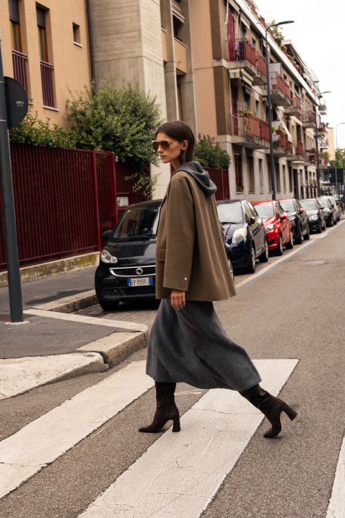 또한 여유 있는 기장과 간결한 디자인이 돋보이는 핸드메이드 울 코트는 뒷면 슬릿 디테일로 활동성을 높였고 스트랩 셔츠와 컬러 포인트가 가미된 브이넥 니트 카디건, 와이드핏 데님 팬츠는 편안한 실루엣으로 도심 속 자연스러운 리듬을 완성한다.