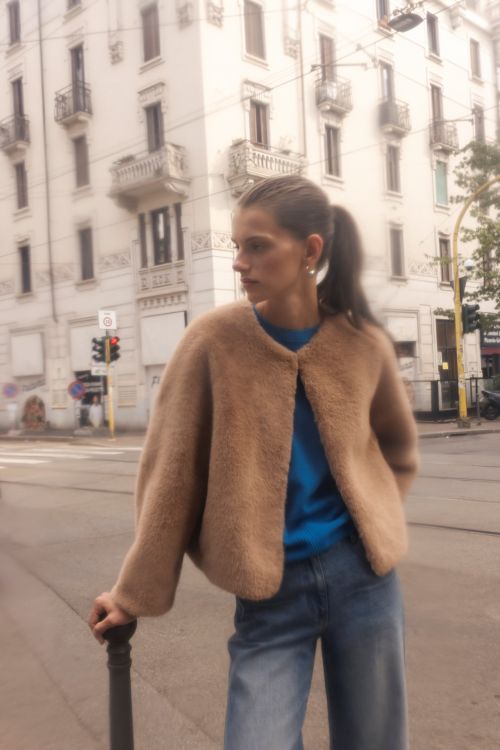 루즈한 쉐입에 트렌디한 크롭 실루엣이 어우러진 페이크 퍼 아우터는 도심 속 따뜻한 쉼표 같은 존재이며 캐시미어 니트 탑은 베이직한 디자인에 고급스러움을 더한다. 빈티지 워싱의 스트레이트 데님 팬츠는 클래식한 실루엣을 통해 내면의 여유로움을 고조시킨다.