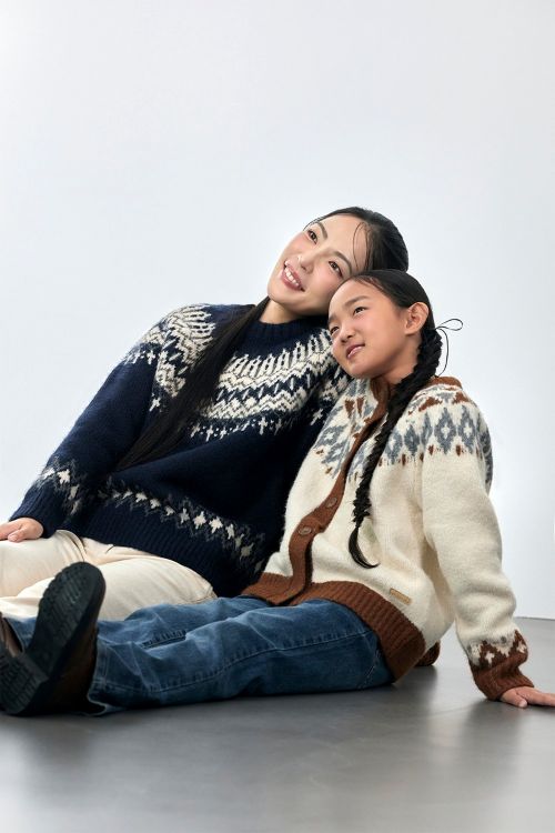 화보에 참여한 가족들은 노르딕 패턴 스웨터와 프로젝트멍 그래픽 스웨터를 중심으로 각자의 개성과 분위기에 맞춘 패밀리룩을 선보였다. 첫 번째 가족은 프로젝트멍 그래픽 스웨터에 체크 플리츠 스커트와 코듀로이 팬츠를 매치해 밝고 사랑스러운 패밀리룩을 연출했으며 노르딕 패턴 스웨터는 브라운, 머스타드 컬러 하의와 함께 따뜻하고 부드러운 감성을 표현했다. 두 번째 가족은 네이비, 화이트, 블랙의 모노톤 조합으로 세련된 겨울 무드를 완성하고 베이지 톤온톤 매치로 포근하면서도 편안한 패밀리룩을 완성했다.