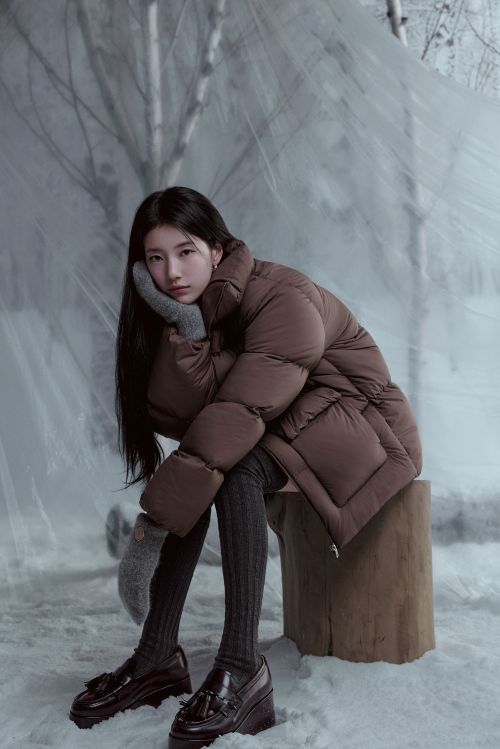 또한 퍼 트리밍이 더해진 글로시 롱 패딩은 시크하고 모던한 감각을, 가벼운 브라운 푸퍼 재킷은 여성스럽고 캐주얼한 분위기를 동시에 연출하며 수지의 다양한 스타일링을 보여준다.