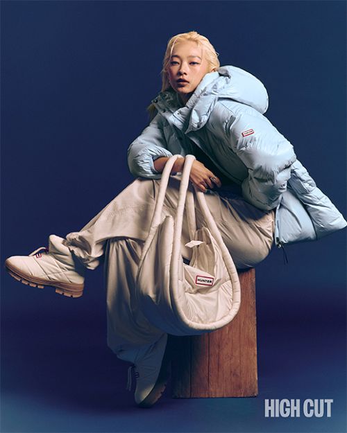 화보 속 KYOKA는 헌터의 다운자켓과 패딩부츠를 활용해 세 가지 겨울 스타일링을 선보였다. 먼저 웜그레이 컬러의 ‘글로시 다운자켓’과 ‘원더러 레이스업 아웃도어 부츠’로 스트리트 감성과 캐주얼 무드를 조화롭게 완성했다.