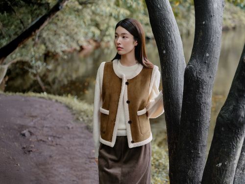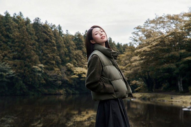 자연을 배경으로는 은은한 아이보리 카키 톤 패딩과 스웨터의 조합으로 겨울의 정취를 담아냈고 도시적 분위기의 컷에서는 차분한 브라운 톤의 리버서블 점퍼와 무스탕 베스트를 톤온톤으로 스타일링해 세련된 겨울 룩을 완성했다.