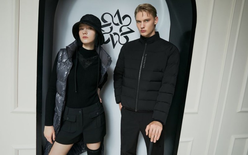 남성 모델은 미니멀한 디자인의 솔리드 구스다운 점퍼를 착용해 절제된 남성미를 표현했다. 가벼운 겉감과 입체 패턴 설계로 활동성을 높였으며 블랙 컬러의 톤온톤 스타일링을 통해 모던하고 시크한 무드를 세련되게 풀어냈다.