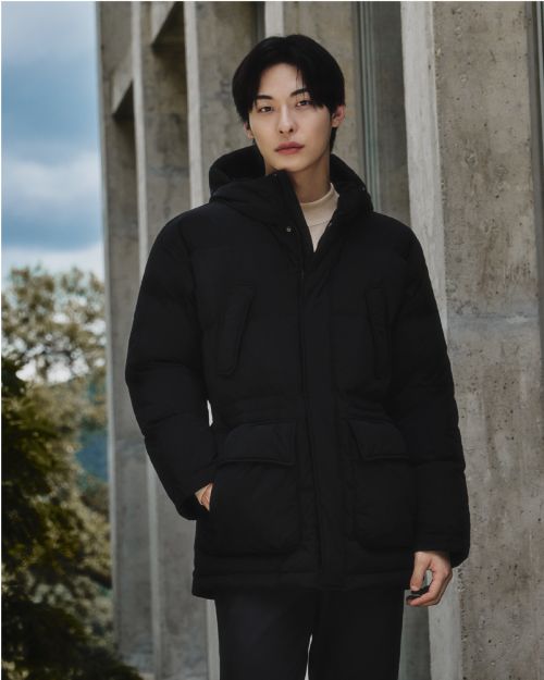 화보 속 남성 모델이 착용한 ‘후드 덕다운 점퍼’는 가벼운 충전재를 사용해 보온성과 활동성을 동시에 충족하는 제품으로 전면에 멀티포켓 디테일을 적용해 수납성을 높인 것이 특징이다. 넉넉한 기장감과 절제된 블랙컬러가 깔끔한 실루엣을 연출하며 일상은 물론 장시간 야외 활동에도 적합한 실용적인 아이템이다.