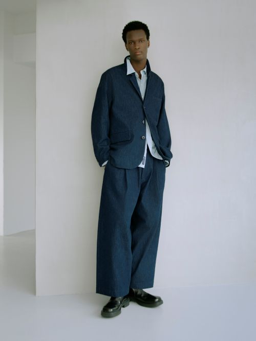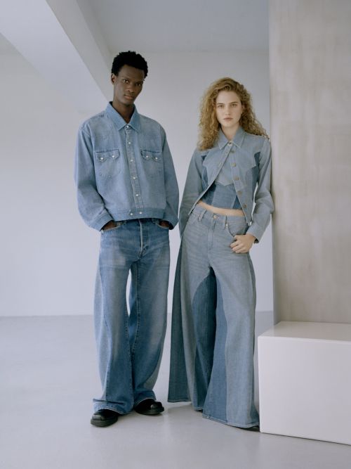 남성 컬렉션은 ‘리바이스’의 클래식 아이템을 혁신적으로 재구성한 실루엣이 돋보인다. 쏘투스데님 셔츠를 트러커 스타일 재킷으로 재해석하고 일본산 인디고 데님으로 제작된 언스트럭처드 수트를 통해 절제된 세련미를 완성한다.