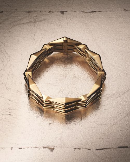 비미니 라인 중심에는 아카이브 주얼리에서 직접 영감을 받은 브레이슬릿이 자리한다. 황금빛 웨이브가 손목을 감싸며 마름모 형태의 요소들이 피부 위에 완벽한 조화를 이루도록 배치되었고 보이지 않는 플렉시블 링크로 고정된다. 시대를 초월한 매력을 품은 대담한 컨템포러리 디자인은 불가리 스타일로 불리는 메종의 본질을 다시 정의한다.