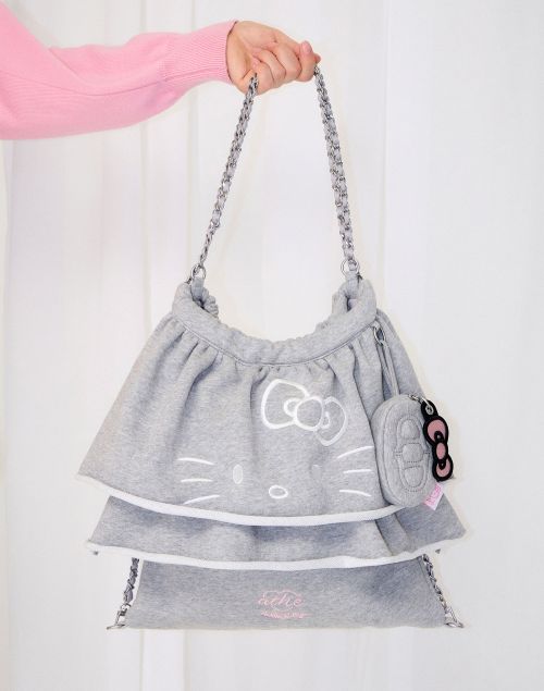 이번 협업에서 프릴백은 편안한 저지 소재와 포멀한 스트라이프 패턴 원단으로 재해석됐다. 저지 소재를 활용한 프릴백에는 빅 사이즈 헬로키티 자수를 적용해 캐주얼한 매력을 강조했다. 반면 광택감이 돋보이는 스트라이프 패턴의 프릴백에는 프릴 끝단에 섬세한 레이스 디테일을 더하고 ‘헬로키티’ 얼굴 모양의 참 장식을 적용해 서로 대비되는 매력을 완성했다.