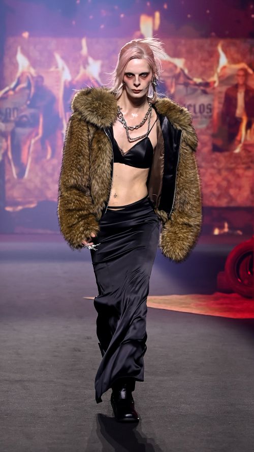 이번 컬렉션에서는 구조적인 실루엣과 과장된 볼륨, 강한 대비의 소재 사용을 통해 압도적인 시선을 향한 욕망을 표현했다. 거리의 펑키한 정서를 기반으로 더 강해 보이고 싶다는 투쟁심과 황금만능주의적 욕망이 교차하는 지점을 모티브로 삼아 에드리엘로스가 정의하는 럭셔리 스트리트의 현재를 제시했다.