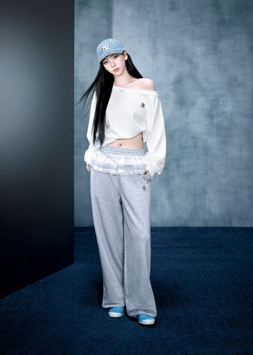 여기에 트렌디한 원숄더 디자인이 돋보이는 여성 베이직 오프숄더 맨투맨여성 베이직 레이스 러플 세미와이드 팬츠를 매치해 ‘MLB’ 대표 볼캡룩에 발레코어 무드를 조화롭게 더했다.