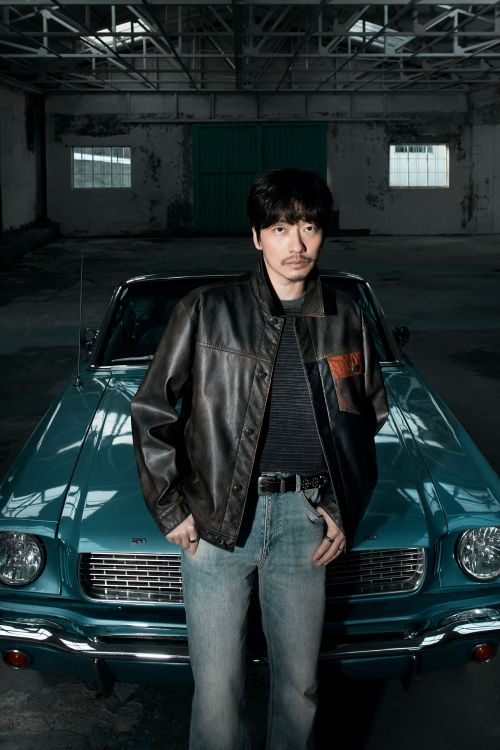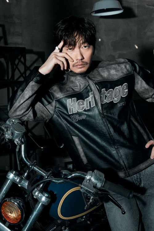 특히 페이크레더 빈티지 라이더 자켓에 그레이 톤 데님 팬츠를 착용한 이동휘는 바이커의 거친 무드를 제안했다. 컬러 블록 디자인으로 간절기 시즌 단독으로도 룩의 포인트가 되는 하이넥 가죽 자켓으로 부드러운 소재로 편안하고 활동성 있게 착용 가능하다.