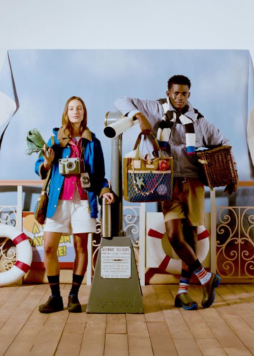 신발에는 ‘폴 스미스’의 스트라이프와 ‘바버’의 타탄 안감을 함께 적용하고 D자 형태의 금속 고리 디테일로 완성도를 높였다. 액세서리는 송어 낚시 가방에서 영감을 받은 여름용 백과 플라이 낚시 자수를 더한 버킷햇 등을 판매하며 재킷 칼라에 부착할 수 있는 바버 핀 배지도 위트를 더해 다양한 디자인으로 선보였다.