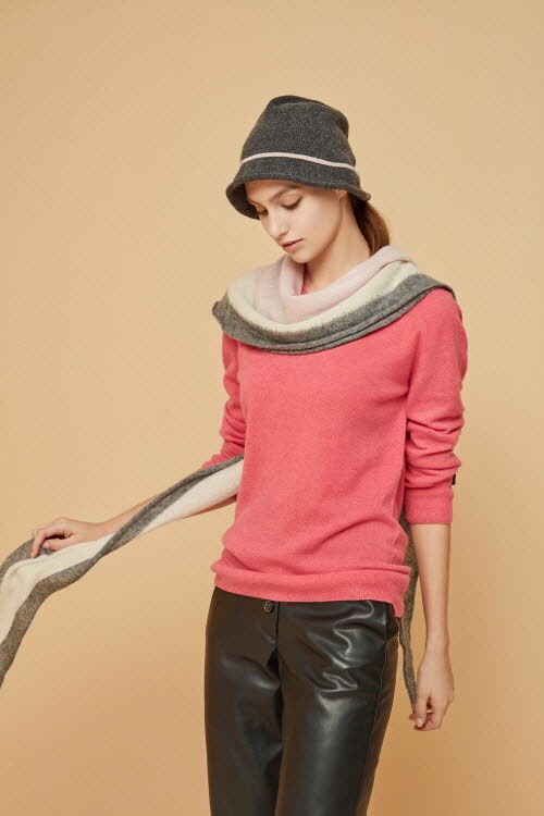 캐시미어 울 블랜디드 모자+머플러 세트는 모든 착장에 멋스럽게 연출 가능한 만능 아이템이다. 니트 모자의 경우 봉제 라인이 없어 푹 눌러쓸 수 있는 깔끔한 디자인이 특징이며 원 포인트의 컬러배색으로 고급스러움을 느낄 수 있다. 니트 머플러는 2m가 넘는 넉넉한 길이감과 마름모 형태로 한겨울까지 니트나 코트와 함께 연출할 수 있는 데일리 필수 아이템이다.