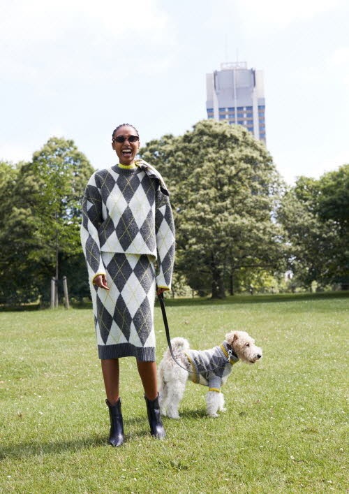 또한 머스터드, 그레이 등 가을 느낌을 주는 컬러에 강렬한 애시드 옐로우로 포인트를 주어 생동감 있는 컬러감이 특징이며 재활용 폴리에스터와 오가닉 코튼 등 지속가능한 소재를 포근한 울과 부드러운 비스코스 소재와 함께 사용하여 반려견과 커플룩을 연출할 수 있도록 동일한 프린트와 컬러를 사용한 강아지를 위한 스웨터도 선보인다.