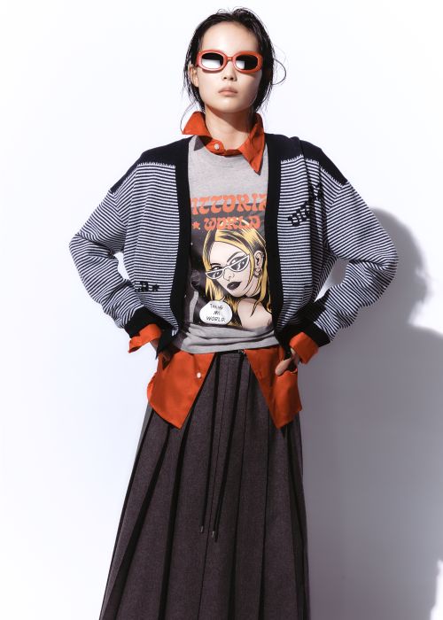 이외에도 티셔츠, 니트, 카디건 등 다양한 아이템에 레터링과 드로잉 아트워크를 더해 일상 속에서도 감각적인 스타일링을 제안한다.
