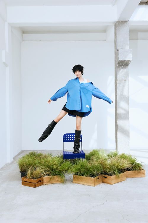 예상치 못한 컬러와 오브제가 놓인 공간 속에서 모델 나나는 장난스러운 움직임과 여유로운 포즈를 선보이며 장면마다 리듬감 있는 분위기를 완성한다. 서로 다른 요소들이 자연스럽게 연결되며 하나의 흐름을 만들어내는 점이 특징이다.