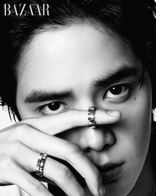 영훈의 깊이 있는 눈빛이 돋보이는 화보에서 착용한 제품은 ‘골든듀’의 시그너처 라인 ‘듀이터널스’로 연속적으로 이어져 있는 이슬방울 모티브가 움직임에 따라 다채로운 광택을 선사한다. ‘골든듀’의 대표적인 베스트셀링 디자인으로 영훈은 서로 다른 사이즈와 금속컬러의 듀이터널스 제품을 레이어드하여 더욱 스타일리시하게 연출했다.