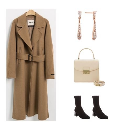 좋은 첫 인상은 소개팅의 성공률을 더욱 높여준다. 당신을 기다리는 남자는 멀리서 걸어오는 카멜색의 롱코트와 블랙 앵클부츠를 신은 당신에게서 우아함의 아우라를 보았을 것이다. 거기에 자그마한 스퀘어 토트백은 여성스러운 분위기까지 풍기게 한다. 첫 대면의 순간, 당신의 얼굴 옆에서 자꾸만 시선이 가는 드롭스타일의 귀걸이는 당신의 미소를 더욱 밝혀줄 것이다. 소개팅룩 하나로 그는 이미 당신에게 빠져버렸을 것이다.