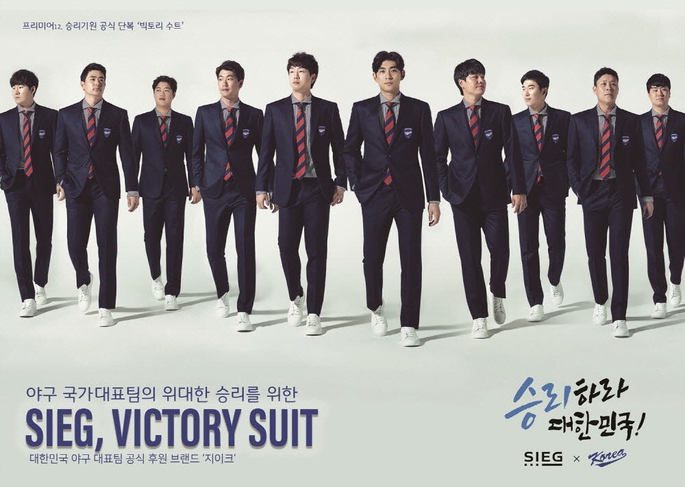 선수들이 착용한 수트는 ‘지이크’의 수트 제작 노하우를 총망라해 특별 제작한 빅토리 수트로 독일어로 승리를 뜻하는 ‘지이크’의 브랜드명을 활용해 야구 국가대표 선수단의 우승을 염원하는 마음을 담아냈다.