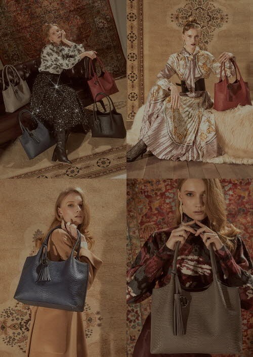라 벨 컬렉션은 40년의 기술력의 노하우를 담은 토트백으로 심플한 쉐입에 큰 사이즈의 참장식 타슬로 시크한 멋을 자랑한다. 아나콘다 엠보 소가죽과 호리젠탈 엠보 소가죽을 믹스 매치해 내추럴한 표면 질감과 광택으로 고급스러움을 강조했다. 흑니켈 도금의 피에르가르뎅 메달 참장식으로 스페셜 에디션의 가치를 더했다.
