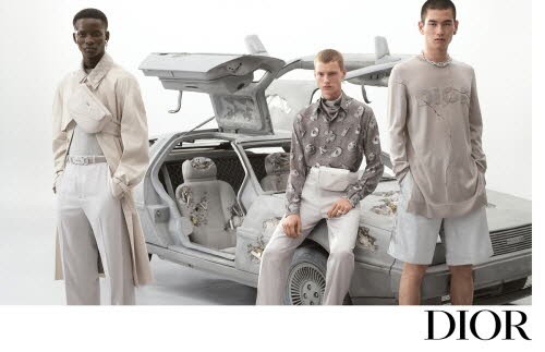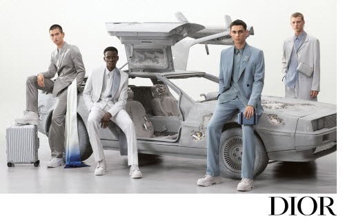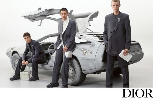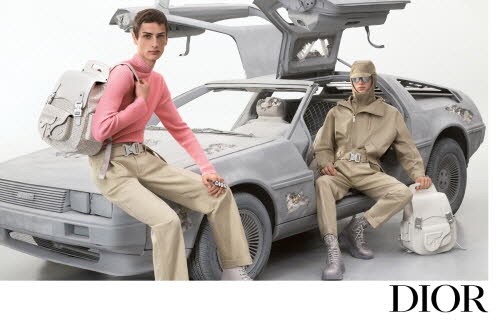 이번 광고 캠페인 속 배경으로 등장하는 자동차는 전설적인 트롤로지 영화 시리즈인 ‘백 투 더 퓨처’에 등장하는 시간 여행 자동차로 미래의 고고학자라고도 불리는 Delorean을 배경으로 스테인리스 스틸, 천공 쿼츠 크리스털 소재로 제작된 부식 처리된 조각품이 디올 코드와 유산을 현재와 결합하는 킴 존스의 컬렉션 테마를 드러낸다.