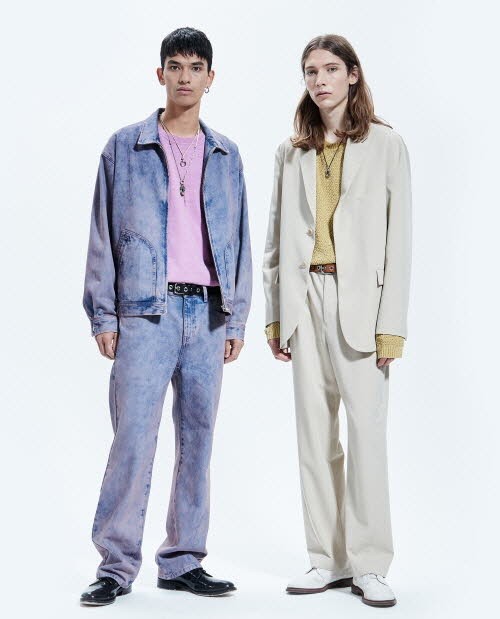 시즌 컬러는 여러 가지 꽃들이 가지고 있는 파스텔톤 컬러와 90s, 피그먼트 워싱, 시어한 소재, 실용적인 디테일 등이 조화롭게 구성되어 있다.