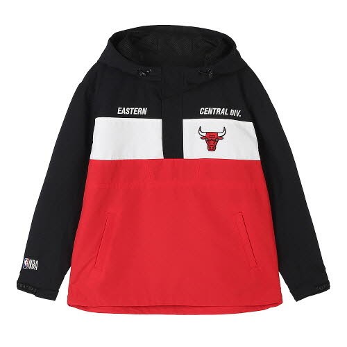시카고 불스 팀로고의 컬러를 절개 블록에 반영한 3단 블록 아노락은 비비드한 컬러감과 함께 가슴에 자수로 새긴 마스코트가 돋보인다. 또한 조절 가능한 소매 밸크로와 밑단 스트링으로 체형에 맞게 편안한 착용이 가능하다.
