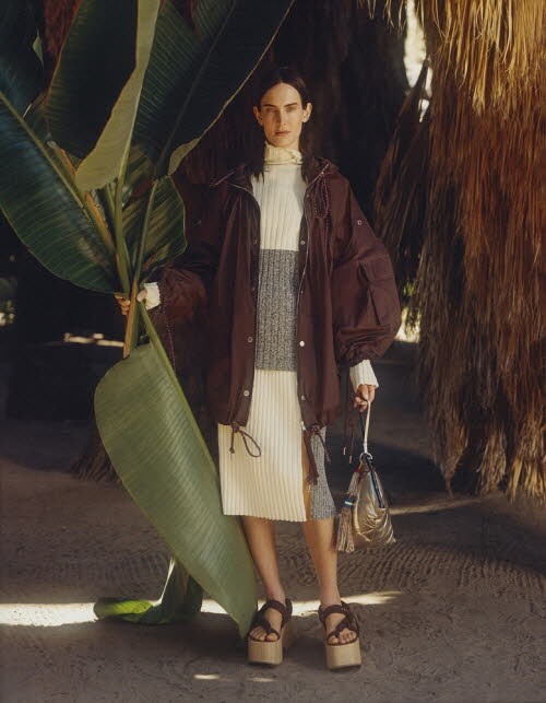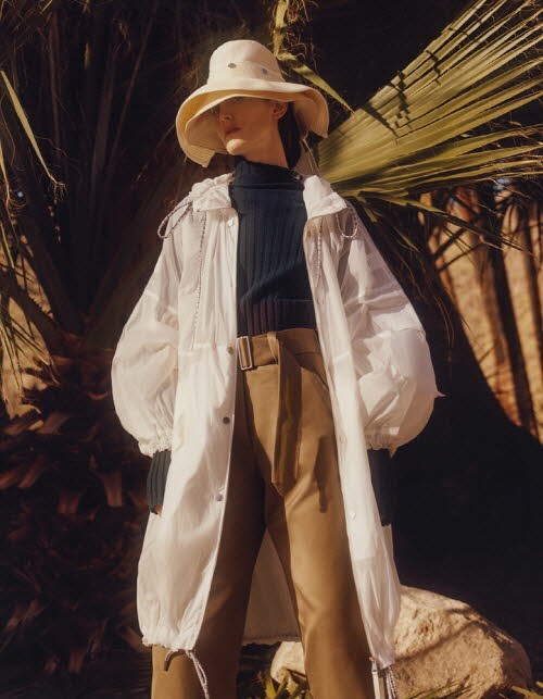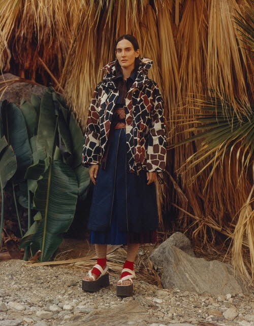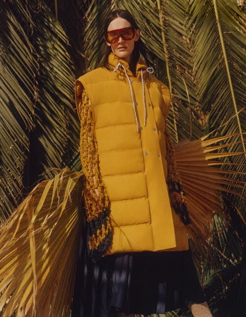 그녀는 추상적인 방식으로 섞여있는 다양한 문화권의 기호와 흔적들을 다문화적으로 연결함으로써 ‘몽클레르’가 지닌 코드들을 해석해냈다. 기린 무늬 같은 아프리카 특유의 기하학 패턴을 스포츠웨어의 형태로 탄생시키며 장난기 어린 열대 지역 특유의 경쾌함을 보여준다.