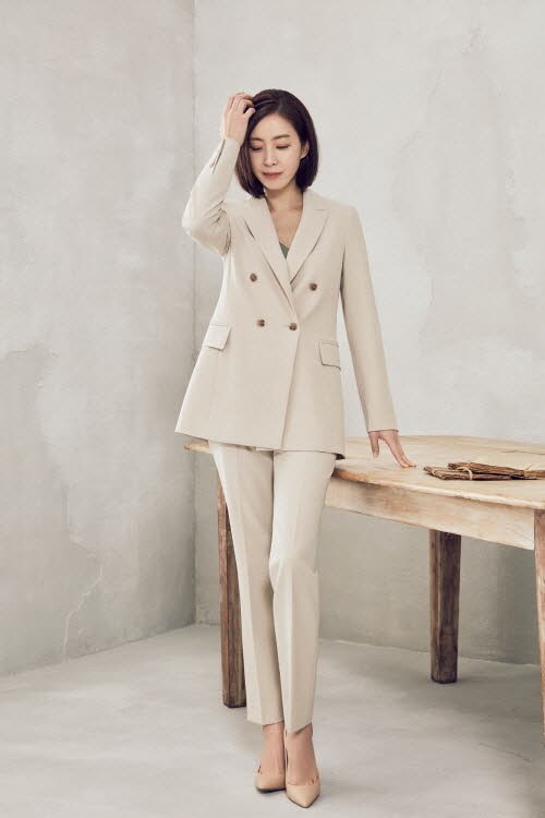 수트 컬렉션의 네이비 세트는 얼굴을 또렷하고 돋보이게 하는 솔리드 자켓과 그레이톤 글렌체크에 산뜻한 블루 포인트로 데일리룩에 적합한 체크 자켓, 그리고 팬츠 3종으로 구성됐다. 베이지 세트는 봄 시즌 부드럽고 우아한 이미지를 연출할 수 있는 솔리드 자켓과 베이지톤 글렌체크에 화사한 옐로우 포인트로 계절감을 나타낸 체크 자켓, 그리고 팬츠가 한 세트다.