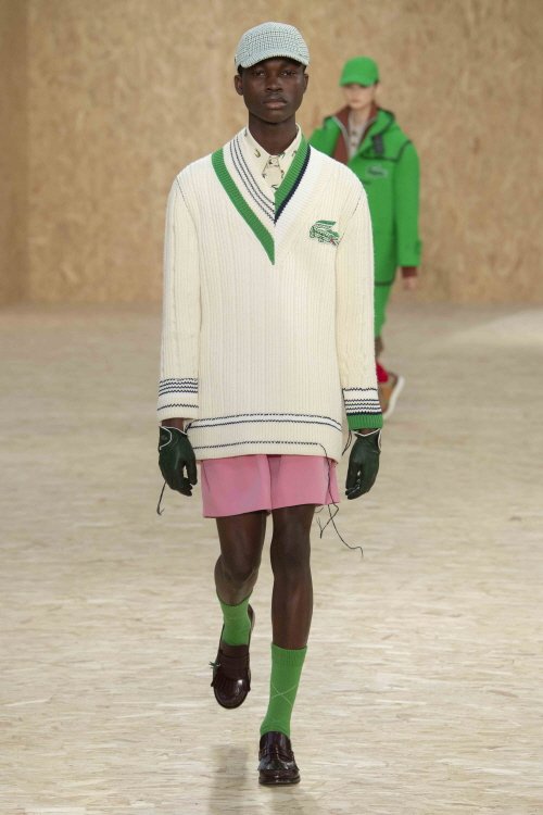 또한 ‘라코스테’ 아이코닉 아이템인 폴로 셔츠의 변주는 더욱 흥미롭다. 르네 라코스테가 최초로 발명한 오리지널 디자인인 L.12.12 폴로 셔츠는 더블 니트의 머서리화 가공 기법을 통해 재탄생되었다. 이 밖에 시몬 띠옹 드 라숌을 기리며 선보인 미니어처 캐디백과 끈 디테일의 골프 브로그화를 재해석한 빈티지 테니스 스타일의 스니커즈 티-클립도 돋보였다. 세기 전 스타일에 현대적인 테크놀로지를 접목함으로써 전면에 신선한 스포티 스타일의 감각을 선보인 컬렉션이었다.
