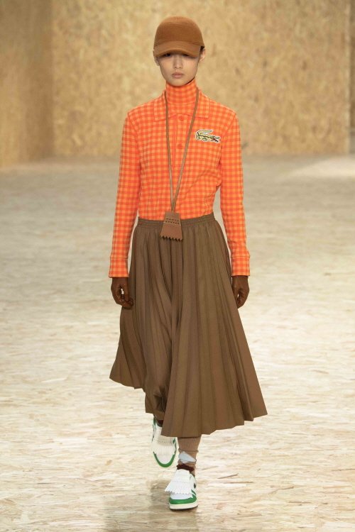 사진작가 쿠엔틴 드 브리에가 촬영한 쇼 모델들의 폴로 캠페인 포스터로 맞이한 쇼장 입구부터 런웨이까지 프렌치 팝 컬쳐에서 불쑥 튀어나온 듯한 ‘라코스테’의 크로코다일을 엿볼 수 있는 컬렉션이 가득했다. 테니스 라켓, 골프 클럽이 프린트된 블라우스와 함께한 저지 소재의 테니스 스커트, 폴로 셔츠 스타일의 박시한 청키 니트, 파스텔 컬러의 올 오버 프린트, 등 브랜드 고유의 헤리티지를 현대적인 감각적으로 담아냈다.