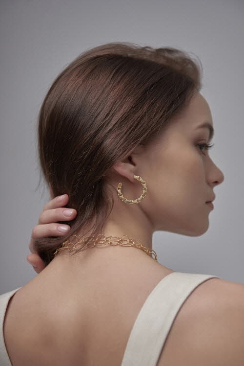 컬렉션을 대표하는 컨피던트 이어링은 더욱 과감하고 대담해진 주얼리 트렌드를 반영하여 볼드하게 풀어낸 아이템이다. 앞면과 양 측면이 동일한 후프 형태로 디자인되었으며 양쪽 끝에 세팅 된 오렌지 큐빅이 움직임에 따라 자연스럽게 보여지는 것이 특징이다. 또한 룩에 따라 다양하게 연출할 수 있도록 스몰과 미디움 두 가지의 사이즈로 구성되어 있으며 가벼운 티셔츠나 스니커즈 같은 데일리 룩에 매치해도 캐주얼하면서 개성있는 룩을 연출할 수 있다.