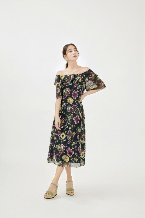 채도 높은 화사한 플라워 프린트의 자켓형 블라우스와 스커트의 세트업부터 풍성한 러플 디테일의 원피스 등 여성스러운 스타일이 눈길을 끈다.