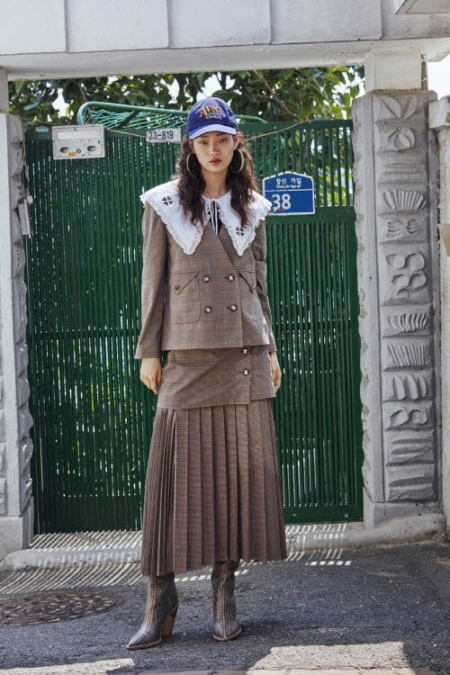 체크 믹스 노카라 숏 자켓은 2가지 체크 원단을 믹스한 유니크 아이템이다. 동일 소재 체크 믹스 주름 롱 스커트와 셋업으로 깔끔하게 코디하거나 캐주얼한 하의와 함께 다양하게 활용하기 좋다.