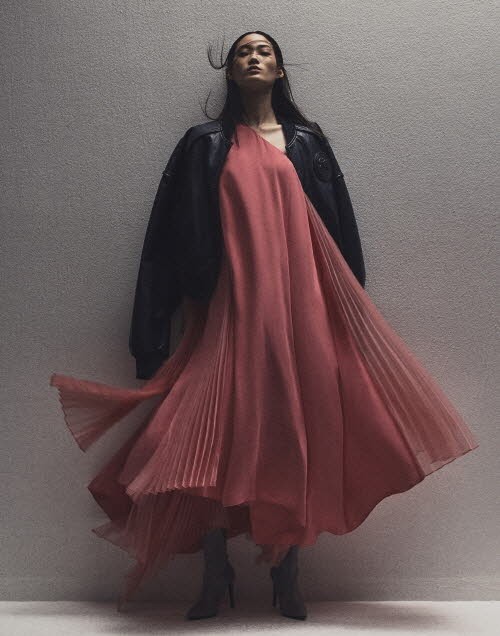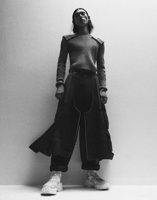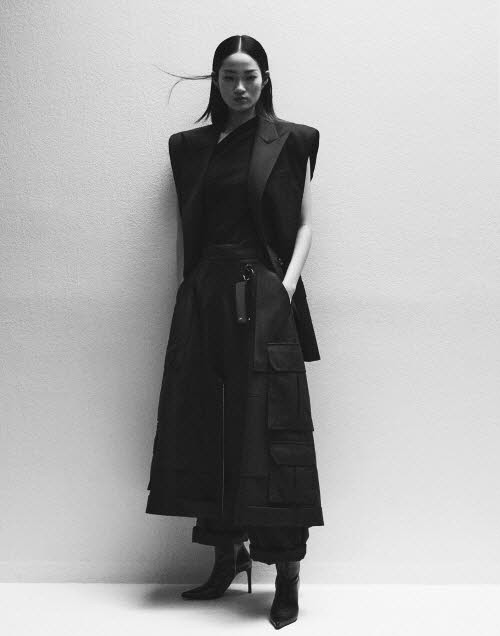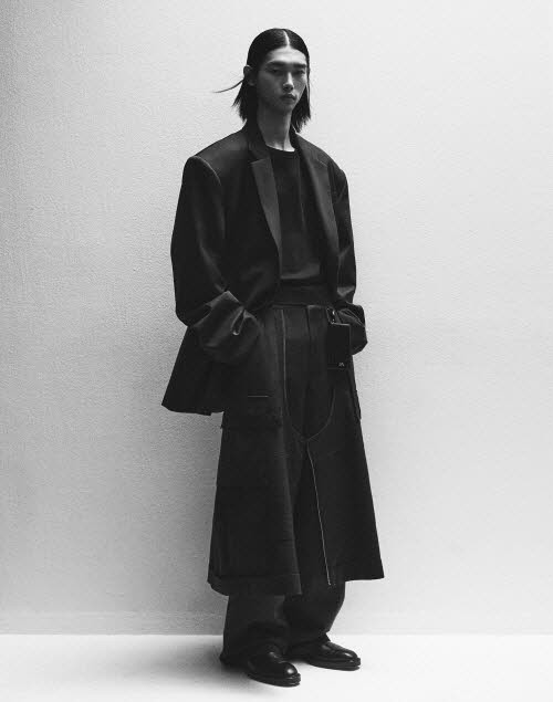 또 밀리터리 디테일을 사용해 실루엣을 풍성하고 유연하게 표현했다. 꼼비네죵, 이중 디테일 팬츠와 밀리터리 니트 드레스, 준지의 시그니쳐 아이템 MA-1, 에코레더 스테디움 재킷, 가죽점퍼 등 총 21개 스타일을 선보였다.