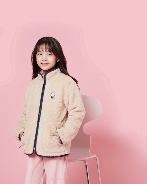 키즈 비숑 자켓은 부드러운 본딩 소재를 사용해 부드럽고 따뜻한 착용감을 제공한다. 네크라인과 지퍼 부분, 소매 끝, 밑단 등에 배색 접밴드를 적용해 포인트를 주었고 방풍 효과를 더해 보온성을 강화했다. 플리스 안감에는 비숑을 그래픽화한 카툰으을 적용해 디자인 포인트를 더했다. 오트밀, 네이비, 핑크 3가지 색상으로 출시됐으며 가격은 7만 9천원
