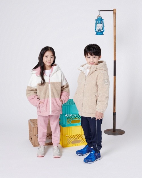 곱슬거리는 털이 특징인 프랑스 대표 견종 비숑 프리제에서 모티브를 얻은 비숑 키즈 컬렉션은 가볍고 따뜻한 플리스 소재를 적용한 비숑 자켓과 플리스와 다운 두 가지로 착장할 수 있는 비숑 다운 및 경량 패딩자켓과 플리스 트레이닝 세트, 맨투맨 등으로 구성됐다.