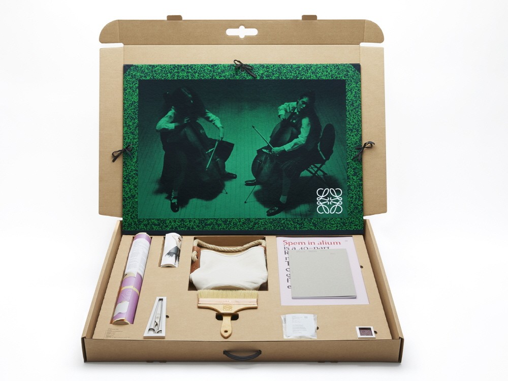 컬렉션 박스는 9가지로 구성되어 있다. 포스터 시리즈, 캔버스백, 앤시아 해밀턴이 디자인 한 벽지 롤, 그리고 ‘로에베’의 전체 컬렉션을 볼 수 있는 또 다른 벽지 롤이 있다. 또한 벽지 접착제, 브러시, 가위, 비트 뿌리 향의 세라믹 방향제, 토머스 탤리스의 ‘주님밖에 희망이 없네’ 악보가 모테트로 들어 있다.