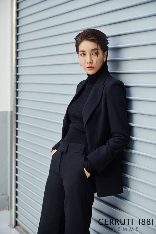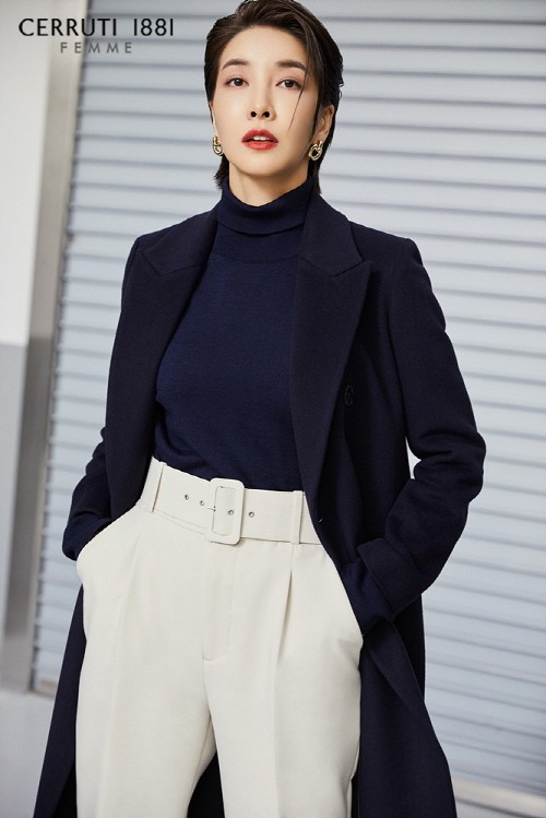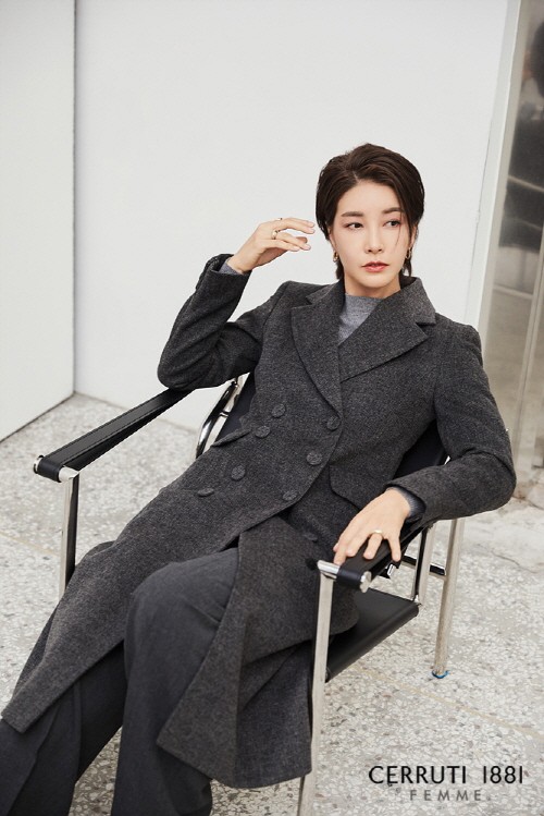 ‘세루티’만의 테일러링과 정제된 디테일의 윈터 수트로 도회적인 모습을 보여주는가 하면 군더더기 없는 깔끔한 쉐입의 헤링본 코트로 그녀 특유의 시크한 매력을 높인 모습이다.