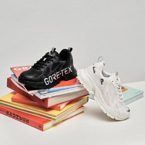 GTX 듀오 고어텍스는 스트리트 패션의 히트 아이템으로 자리잡은 어글리 슈즈의 고어텍스 콜라보레이션 버전이다. MZ세대에게 특히나 폭풍적인 지지를 얻고 있는 어글리 슈즈의 특징인 오버사이즈 아웃솔 디자인으로 트렌디함을 살렸고 인젝션 파일론이 적용되어 쿠션감과 가벼운 착용감을 통한 안정적인 착화감을 제공한다.